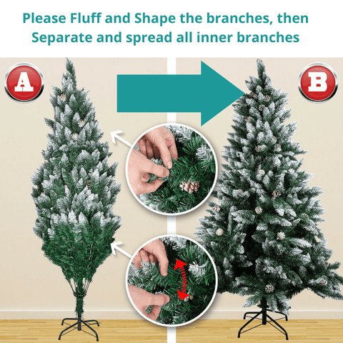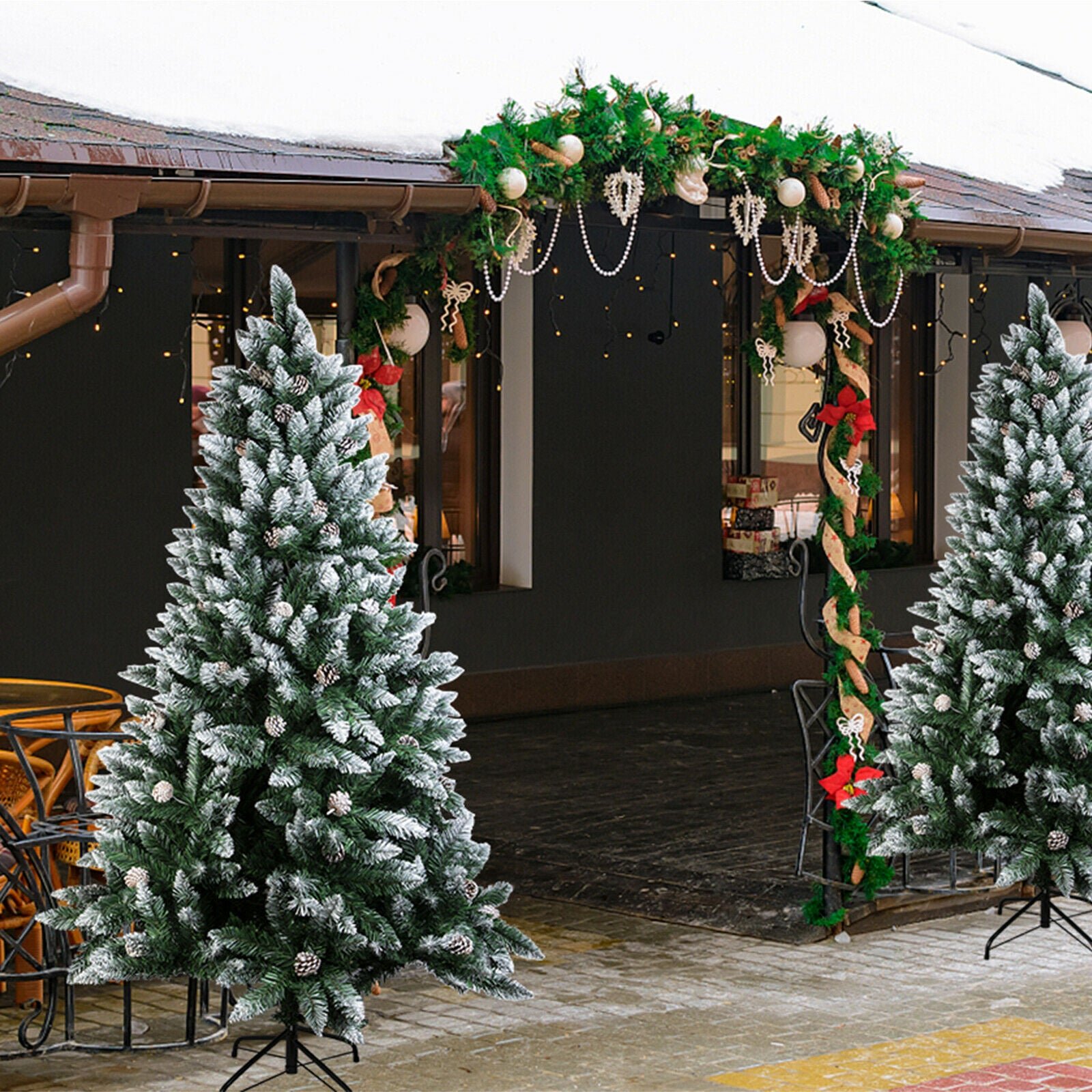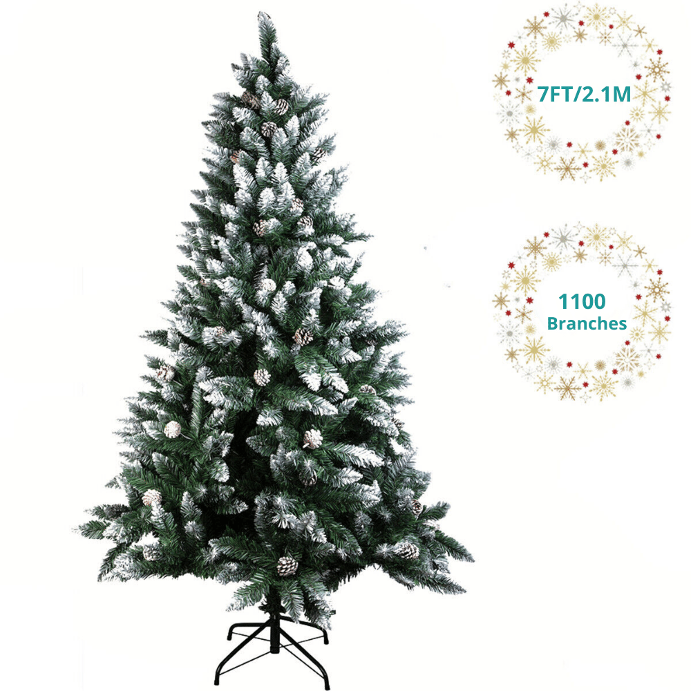 4/5/6/7ft Best Artificial Flocked Christmas Tree With Pine Cones