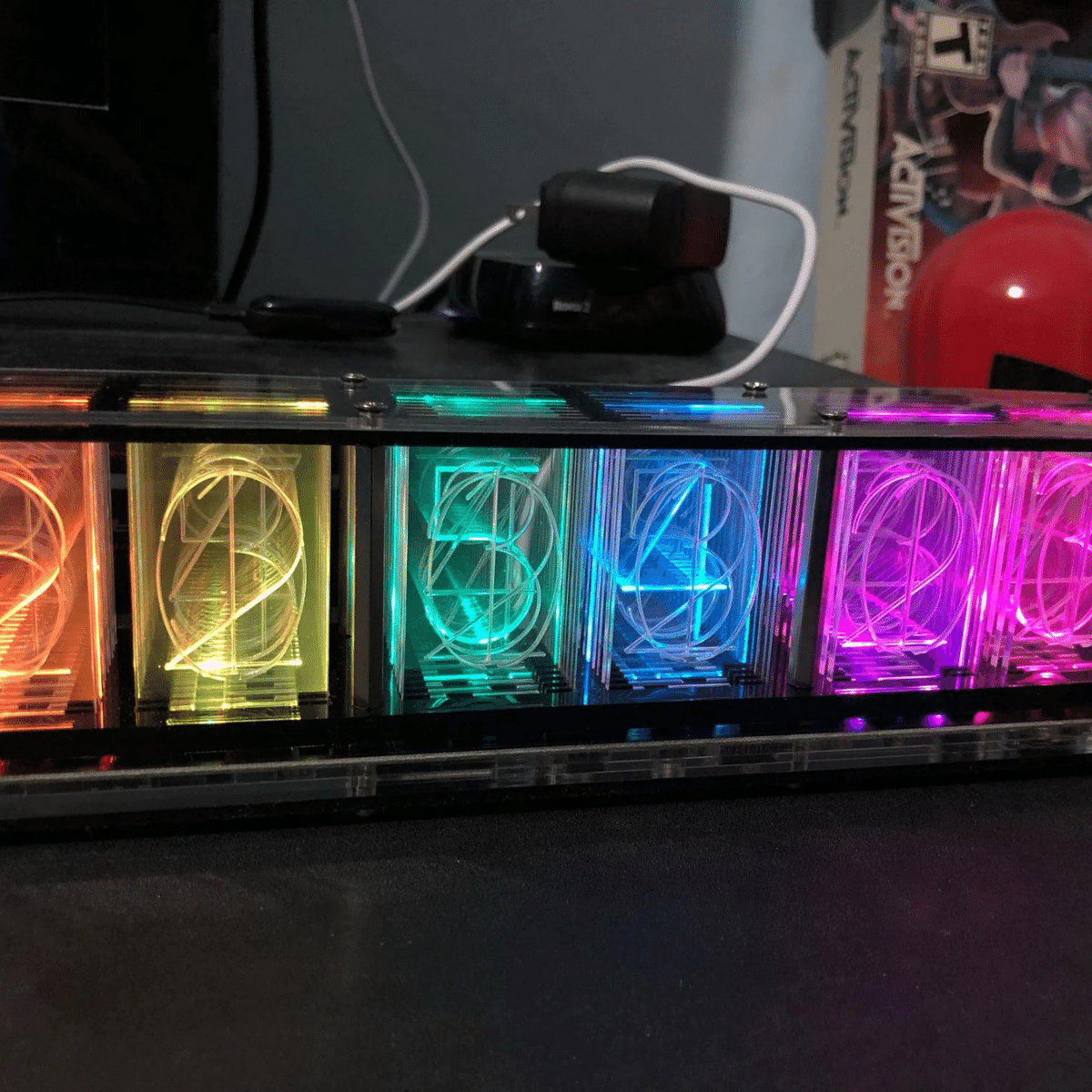 Our Electronic Led Tube Light Nixie Clock has Different numbers engraved on the transparent acrylic, the digital effect is refracted by the bright RGB lamp, which simulates the display effect of the fluorescent tube glow clock.