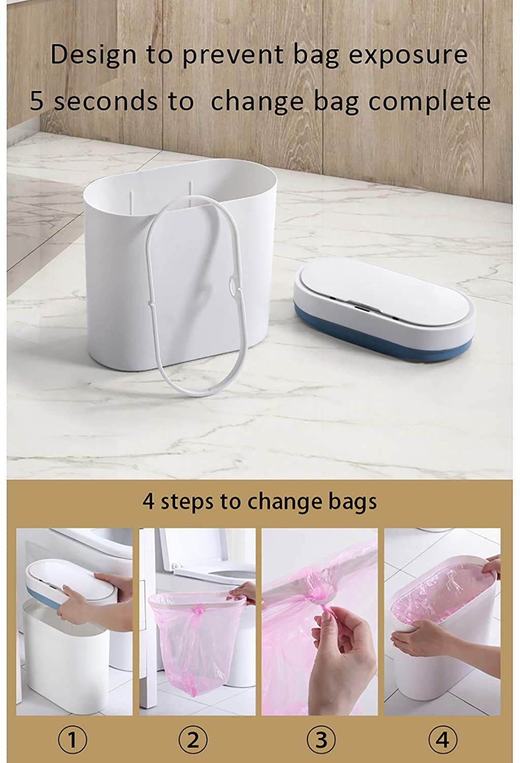 FINGERPRINT PROOF COATING – Upgrade your home with our compact, sleek, silver bathroom bins. The brushed Stainless Steel exterior is designed with Hi-Tech Anti-Fingerprint Coating. This ensures the Sensor Garbage Can always looks flawless. Even when you clean with a damp cloth, there will be no streaks.