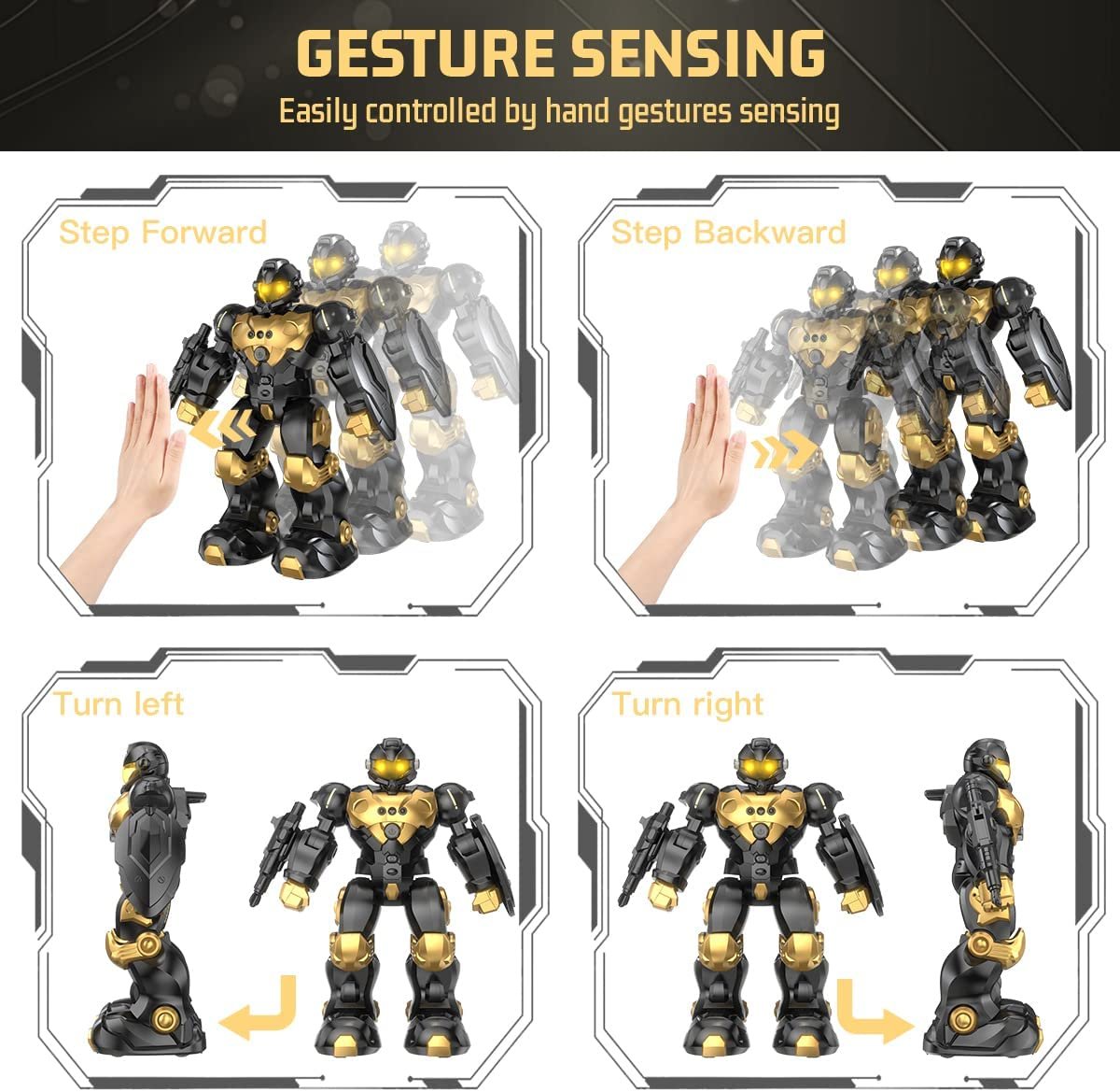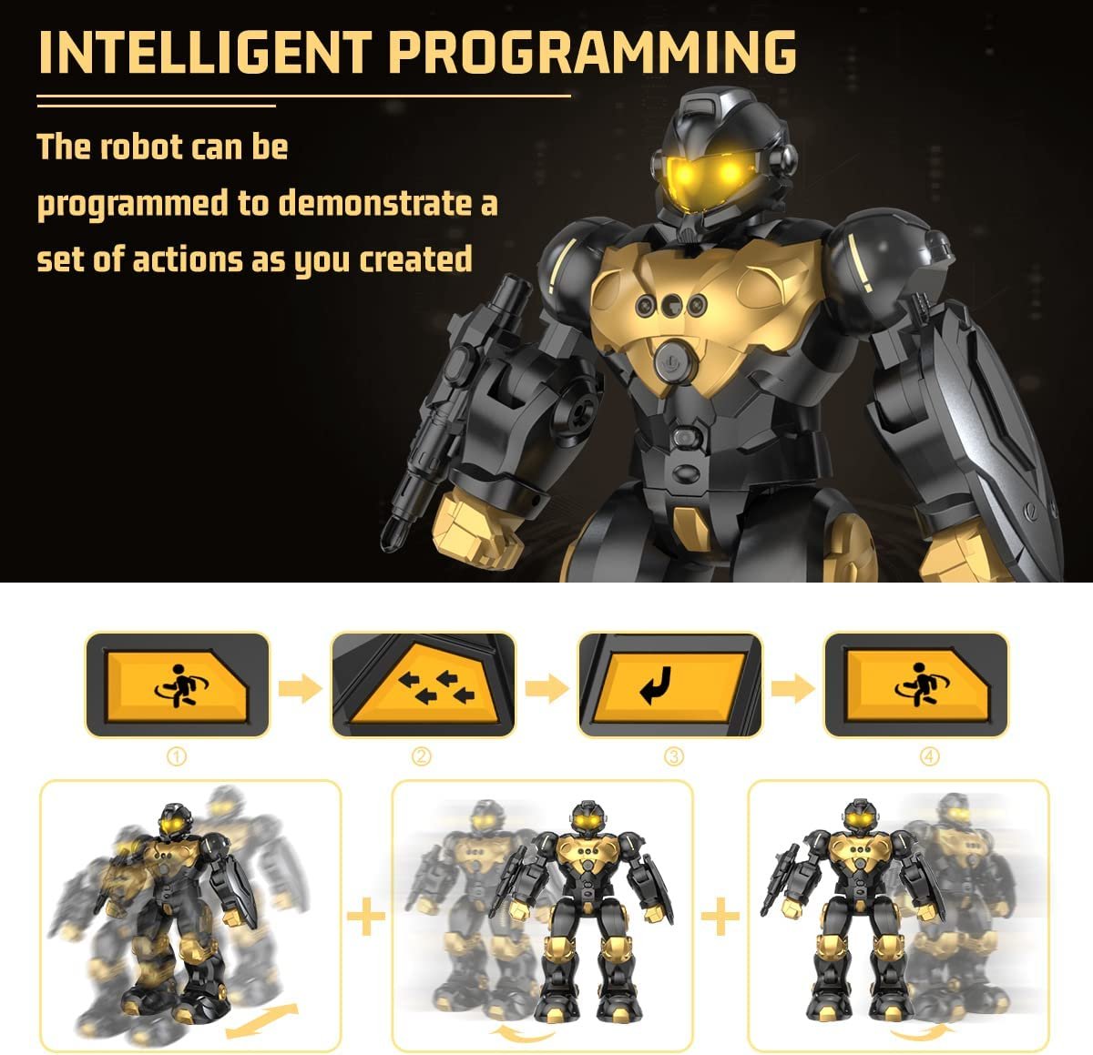 The programmable robot toy also can show your kids’ imagination and creativity. The boy or girl can press the buttons to write a new movement command by the remote controller after choosing the programmable mode. there are 10+ buttons that can help them make the command and up to 50 actions can be programmable.
