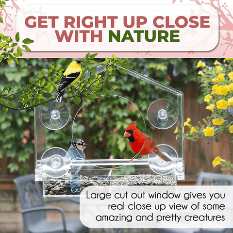 See colorful wild birds from up close. Sit in your kitchen and have fun discovering your garden birds. Fits onto any plain glass window. Our Window Bird Feeder is one of the very best items that you need to purchase. Our Window Mounted Bird Feeder is extremely well-made, sturdy, and attractive! Anyone interested in these bird feeders should have absolutely no hesitations.